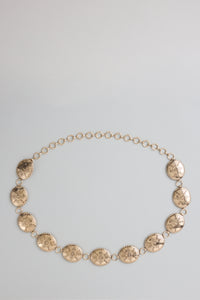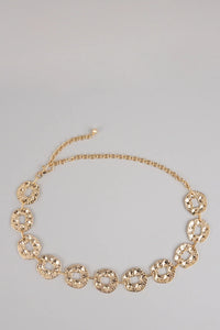 This chain belt is all about bold texture and glam energy—made to turn even the simplest outfit into a total serve. The hammered oval-shaped accents will bring a chic shine to your look.