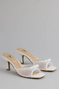 These mesh mule heels are topped with a delicate bow for that perfect blend of elegance and flirt, ready for date nights, bridal vibes, or dressing up your fave jeans.