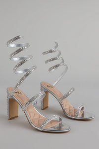 Feelin' Glam Rhinestone Spiral Strap Block Heels
