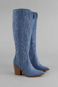 Ready to stomp, slay, and steal the spotlight. These knee-high cowboy boots bring all the drama with classic stitching and a stacked block heel—perfect for concerts, bachelorettes, or your next country line dancing night!