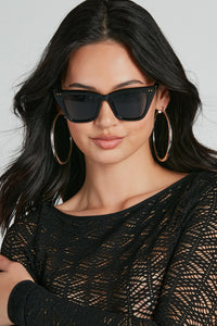 These sleek and chic square-frame sunglasses will be a staple for the season! A trendy take on a classic design, these shades feature a square shape with a subtle angle, tinted lenses, a plastic frame, and mini-studded accents on each side. Style with hoop earrings.