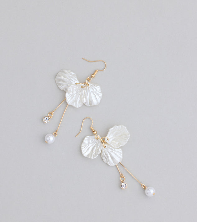 You'll be a chic beauty in these stunning statement earrings featuring a flower petal design and cascading rhinestone and faux pearl accents.