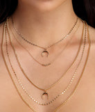 Get those glam chic vibes with these half moon layered necklaces! They feature five layers of mixed gold chains, two of the rows showcasing pretty half moon charms.